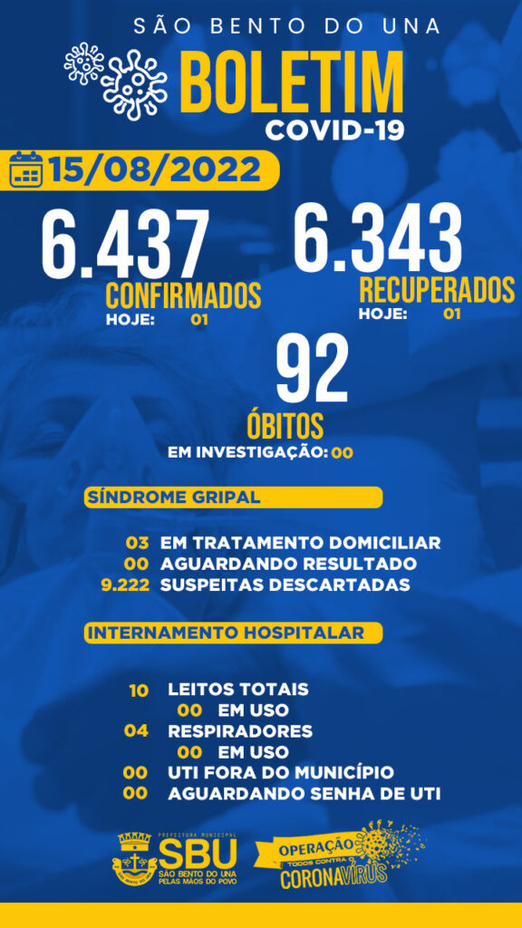 15 de agosto de 2022Publicado por ASCOM - SBU em 15 de agosto de 2022Categorias Boletins COVID-19Boletim COVID-19 em 15/08/2022