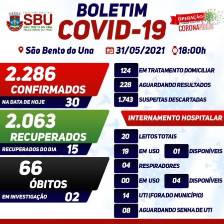 31 de maio de 2021Publicado por ASCOM - SBU em 31 de maio de 2021Categorias Boletins COVID-19Boletim COVID-19 em 31/05/2021