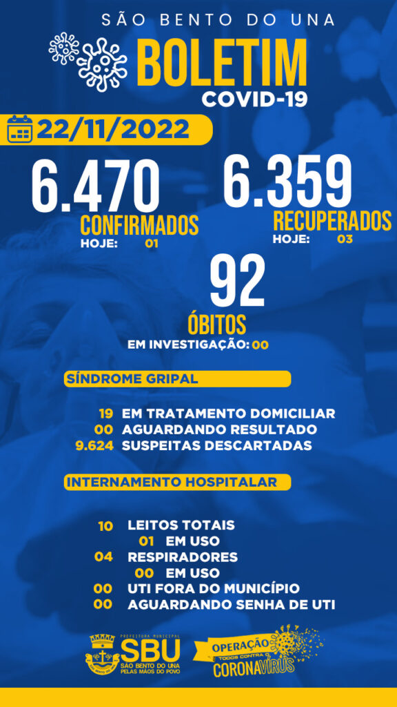 23 de novembro de 2022Publicado por ASCOM - SBU em 23 de novembro de 2022Categorias Boletins COVID-19Boletim COVID-19 em 23/11/2022