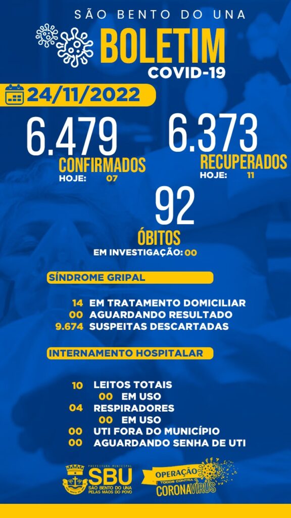 24 de novembro de 2022Publicado por ASCOM - SBU em 24 de novembro de 2022Categorias Boletins COVID-19Boletim COVID-19 em 24/11/2022