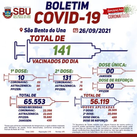 A Secretaria Municipal de Saúde, através do PNI local, informa que recebeu novas doses da vacina AstraZeneca, destinadas à aplicação da D2, a partir de amanhã, dia 26 de setembro. Vale ressaltar que a cota de recebimento tem sido inferior […]