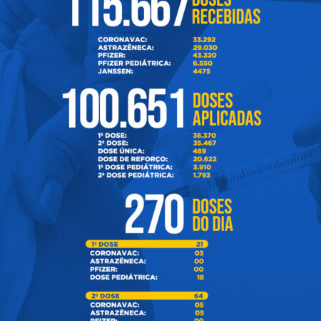A Secretaria Municipal de Saúde comemora a marca de 100. 000 DOSES DE VACINA APLICADAS CONTRA A COVID-19! O sucesso da vacinação reflete diretamente na queda do número de casos no Município. Para a Gestão Pelas Mãos do Povo, esta […]