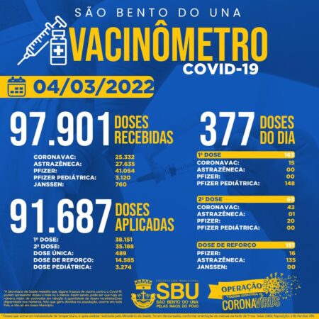 4 de março de 2022Publicado por ASCOM - SBU em 4 de março de 2022Categorias Boletim de VacinaçãoBoletim de Vacinação 04/03/2022