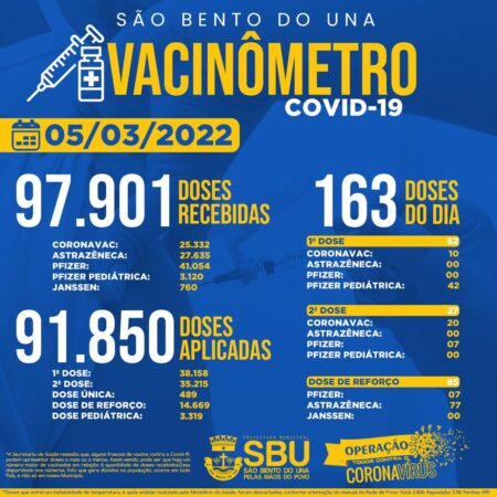 5 de março de 2022Publicado por ASCOM - SBU em 5 de março de 2022Categorias Boletim de VacinaçãoBoletim de Vacinação 05/03/2022