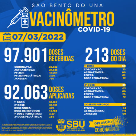 7 de março de 2022Publicado por ASCOM - SBU em 7 de março de 2022Categorias Boletim de VacinaçãoBoletim de Vacinação 07/03/2022
