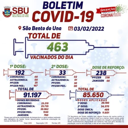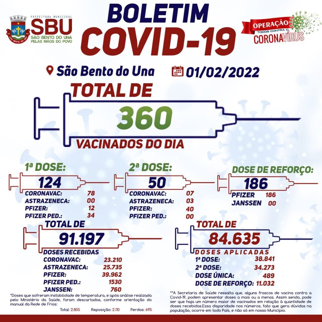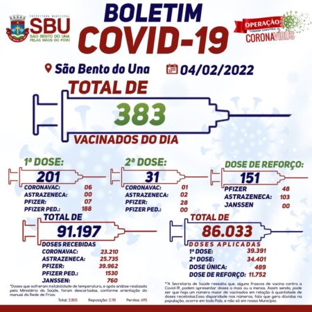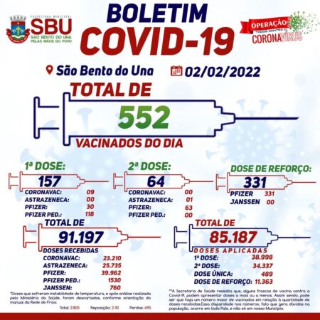 A Prefeitura Municipal de São Bento do Una, por meio do PNI local, comunica à população o NOVO HORÁRIO de funcionamento da VACINAÇÃO CONTRA A COVID-19: De segunda a sexta-feira: 8h às 15h.Sábados e feriados: 8h às 12h. #notíciassbu