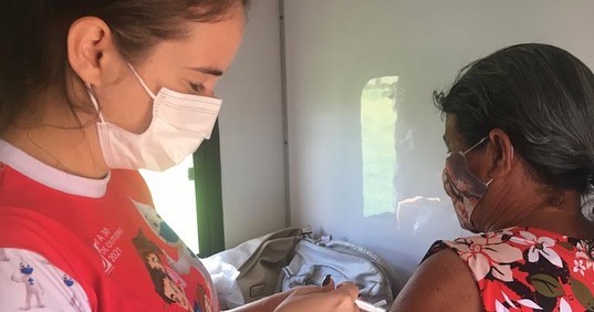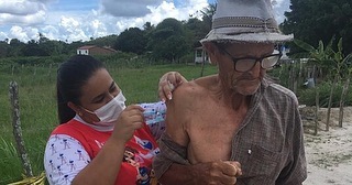 Entre os dias 06 e 08/04, foi a vez dos idosos das áreas rurais de difícil acesso receberem a 4ª dose da vacina contra a COVID-19, como também, a imunização contra a Influenza.