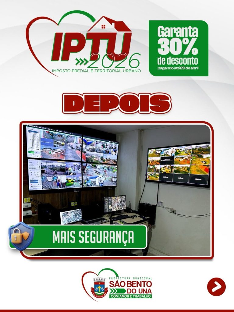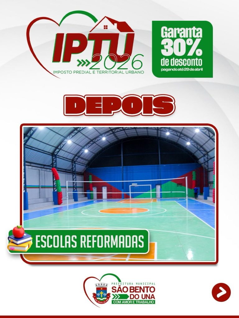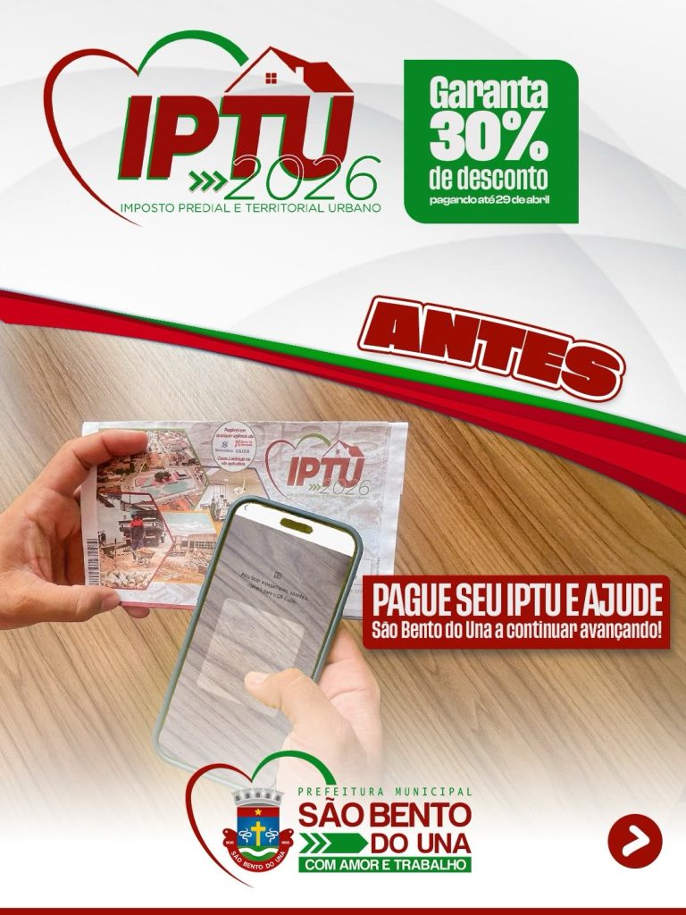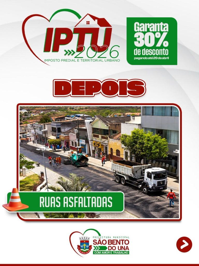 Ao manter seu IPTU em dia, você contribui diretamente para o desenvolvimento da nossa cidade. É com esses recursos que seguimos avançando e investindo em áreas essenciais como educação, infraestrutura, saúde e segurança, garantindo mais qualidade de vida para toda a população.