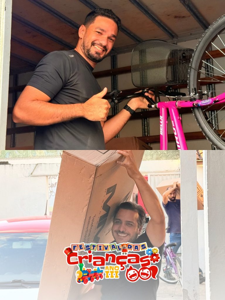 Na tarde desta sexta-feira, a Sede da Secretaria de Assistência Social recebeu um caminhão carregado de alegria e surpresas: 50 bicicletas novinhas, que serão sorteadas no III Festival das Crianças, no próximo domingo!