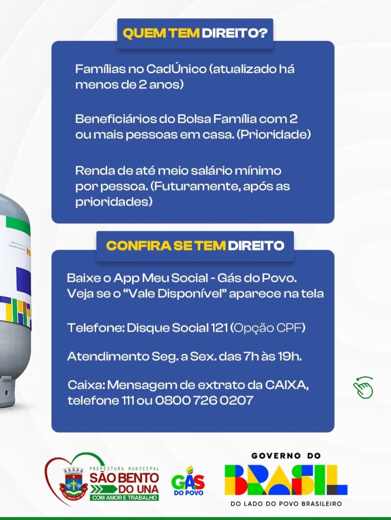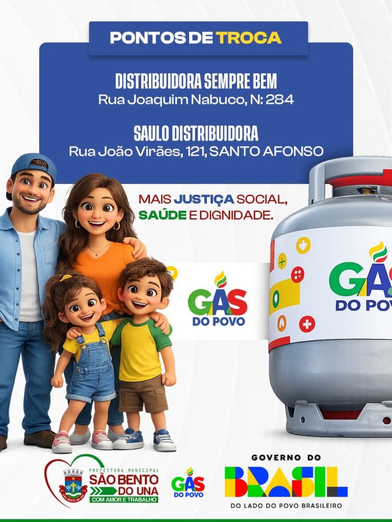 A Prefeitura municipal, por meio da Secretaria Municipal de Assistência Social, informa que o programa Gás do Povo já está em vigor em nosso município, garantindo mais justiça social e dignidade para as famílias que mais precisam.
