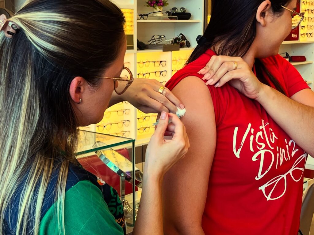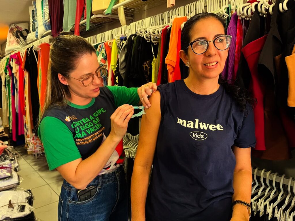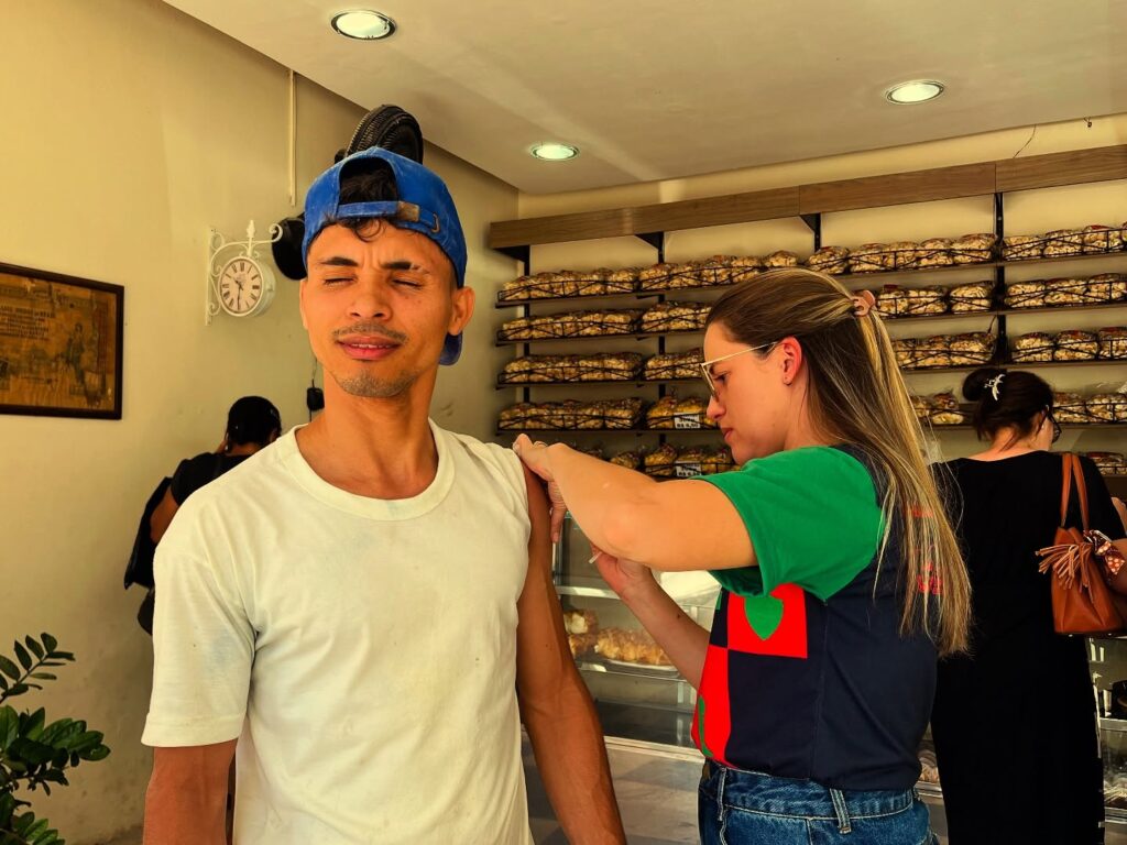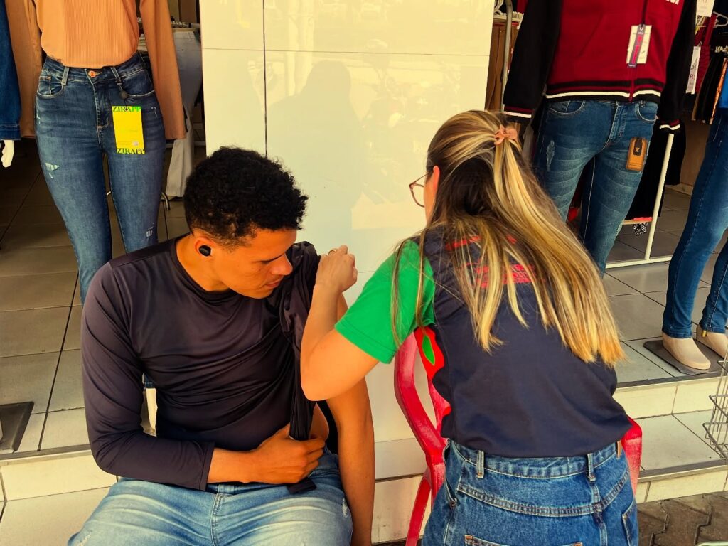 Hoje, quarta-feira, a ação alcançou todos os pontos comerciais próximos à Praça Historiador Adalberto Paiva, levando saúde e proteção à comunidade local.