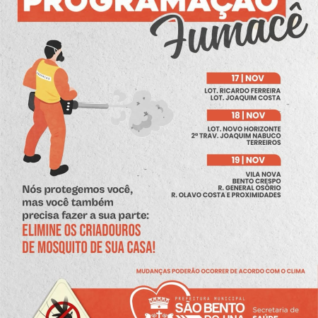 A Prefeitura de São Bento do Una, através da Secretaria de Saúde, informa o cronograma de ação do FUMACÊ no Município/ Período de 11/06 a 14/06.