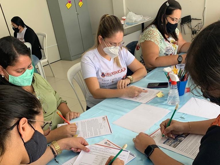 Com o objetivo de revisar as sequências das atividades propostas para o 2° Caderno de Atividades Remotas do III Bimestre, bem como, a relação com os conteúdos previstos, Coordenadores Técnico-pedagógicos, divididos em dois grupos (de acordo com as modalidades), reuniram-se na manhã de hoje, dia 26 de julho, com Educadores da Rede da Educação Infantil ao 9° Ano na Sede da Secretaria de Educação e na Escola Municipal Ivete Cordeiro Valença, para discutirem e alinharem ações referentes, visando proporcionar o desenvolvimento dos estudantes em relação à nova forma de aprendizagem temporária.
