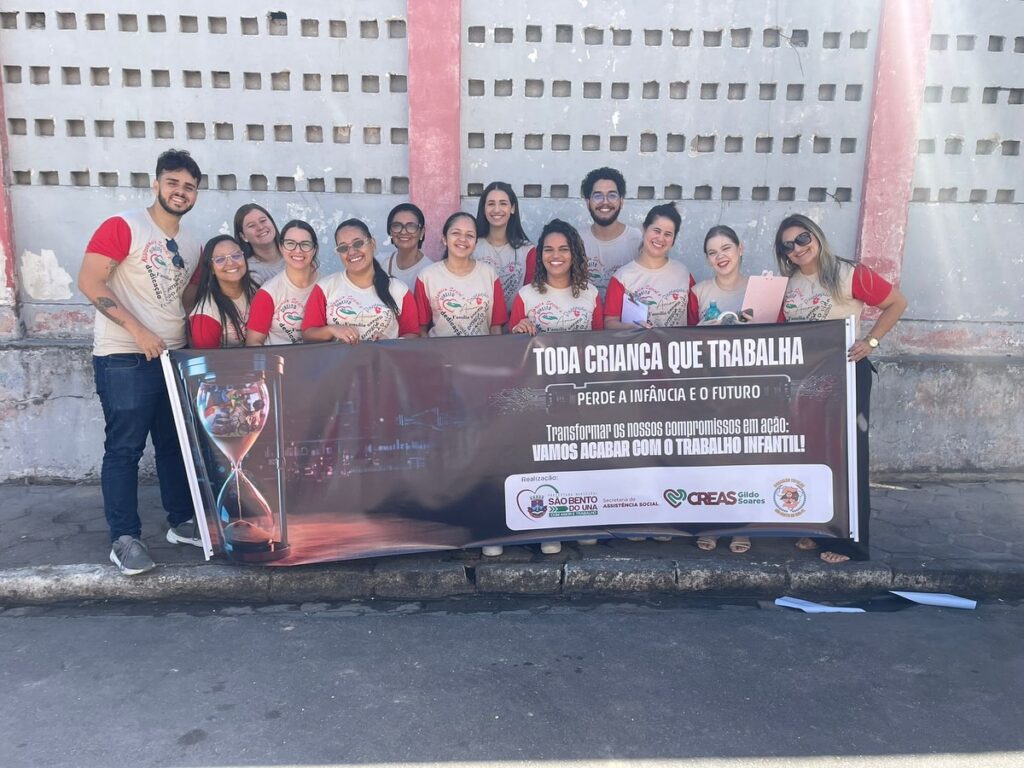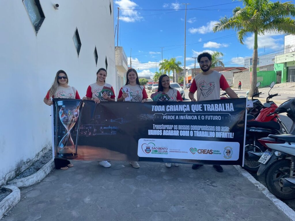 A Prefeitura de São Bento do Una, através dos CREAS e parceiros, está realizando uma campanha para sensibilizar a população e os comerciantes locais sobre a ilegalidade e os danos causados pelo trabalho infantil.