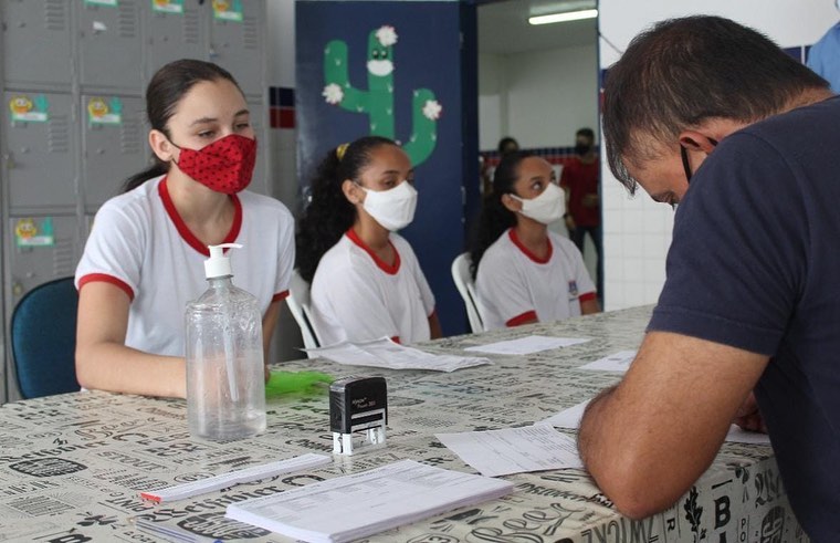 Parte da equipe se deslocou até a Escola, onde foram realizadas as emissões de 48 RGs para os estudantes matriculados no 9° Ano do Ensino Fundamental.